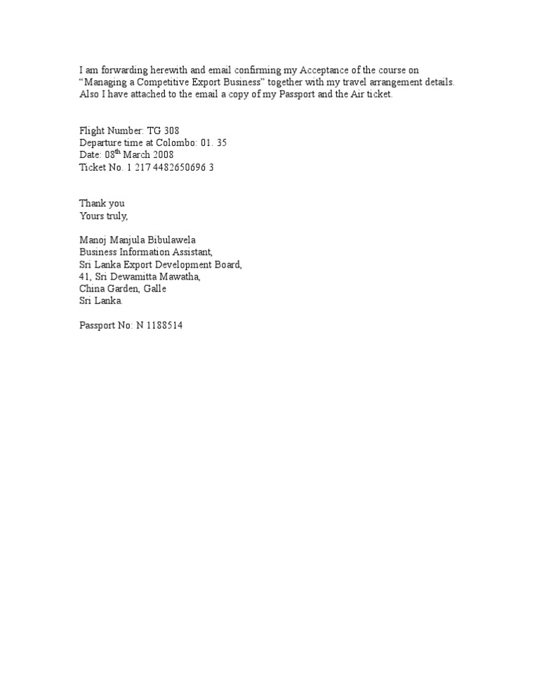 I Am Forwarding Herewith and Email Confirming My Acceptance of the